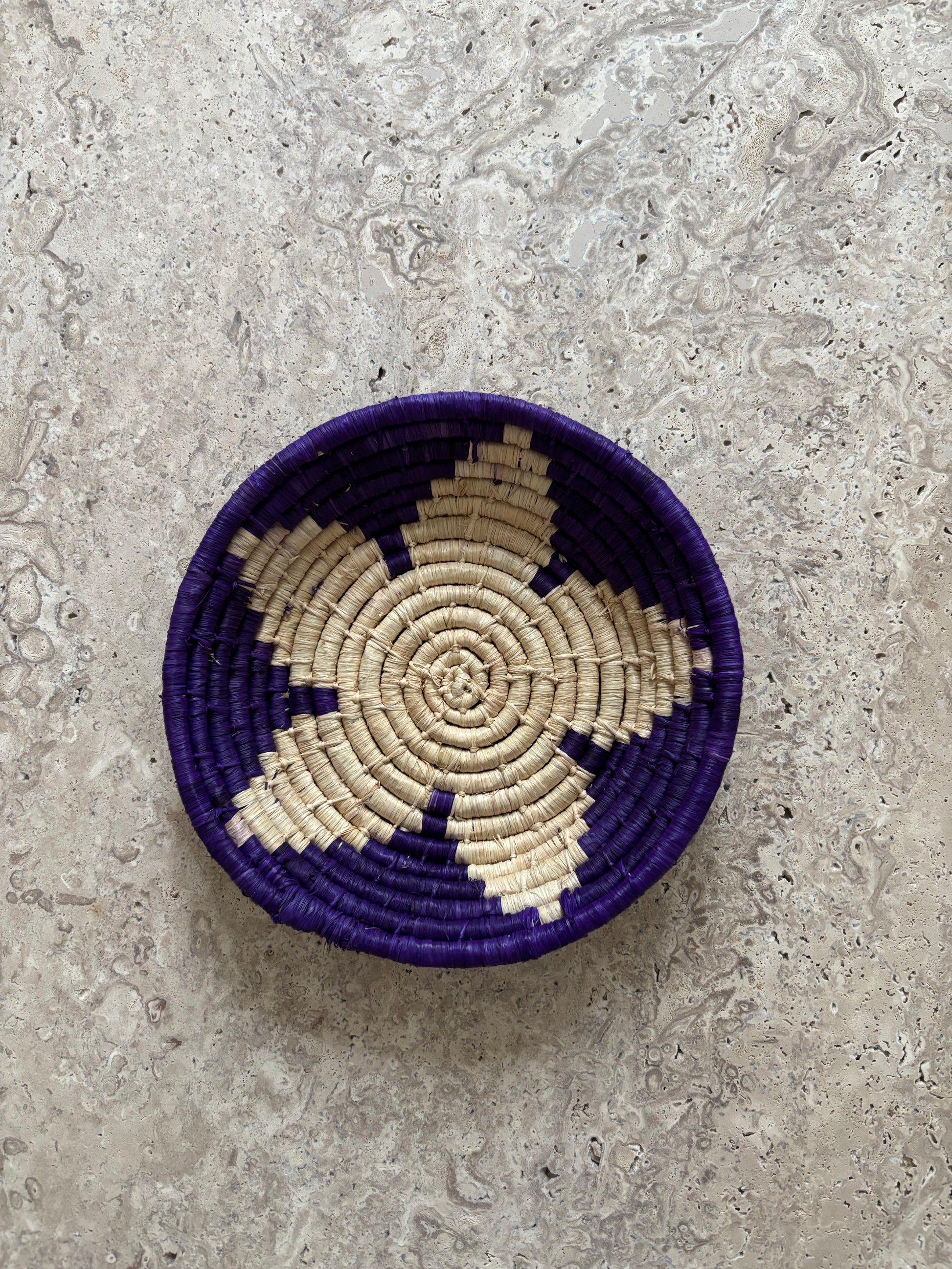 Petit panier fait main en matières naturelles violet